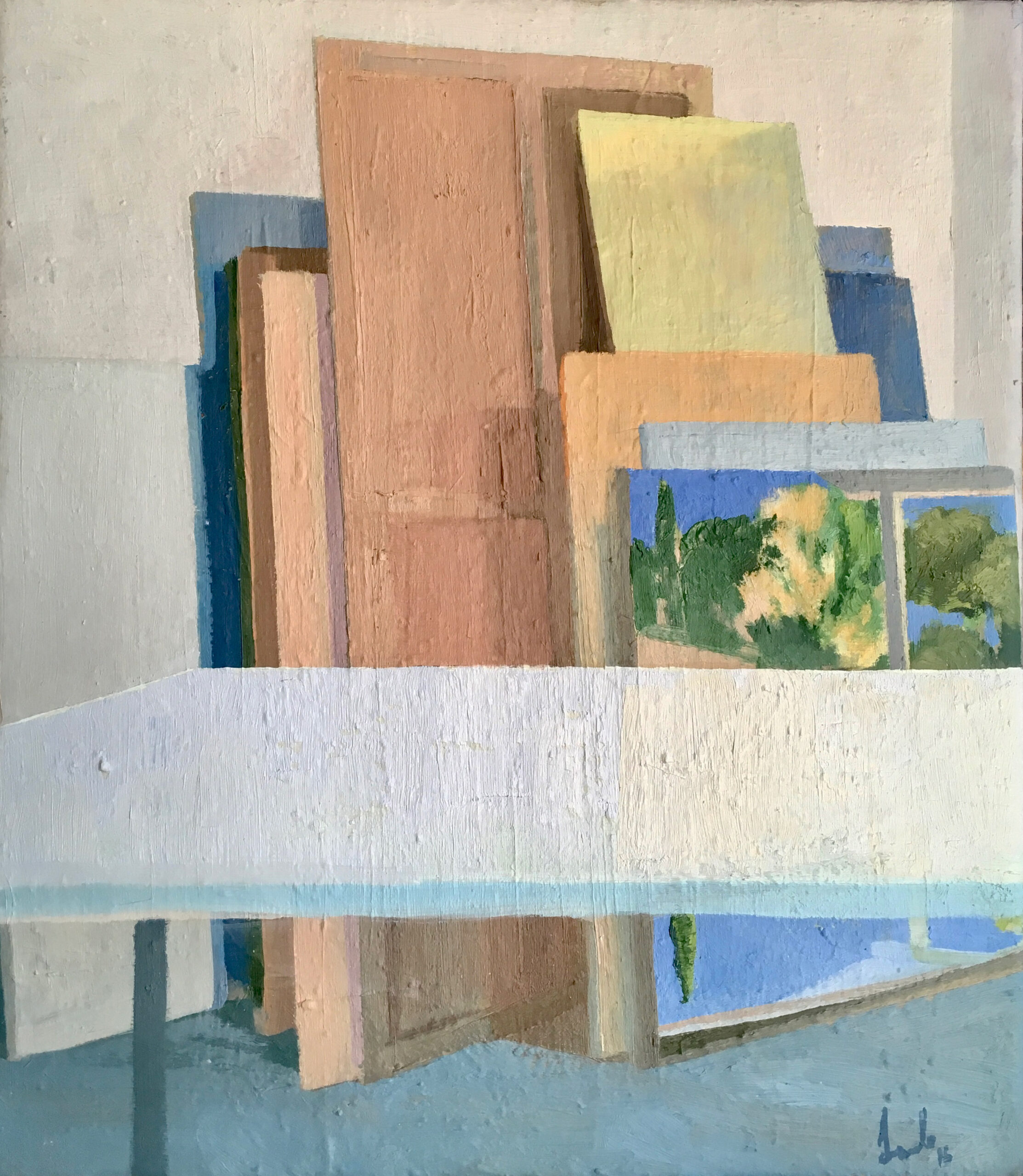 Momentos y lugares, recuerdos rescatados de la memoria y capturas de la retina. Todo ello, deja constancia de una memoria visual, de la misma manera que un álbum de fotos, sea de papel o digital, logra. Se acumulan, se superponen, se mantienen en el tiempo y se entremezclan. Una memoria visual entretejida desde dentro de un espacio interior, el estudio, por una red de relaciones y conexiones entre las distintas partes y que abre la perspectiva hacia el espacio exterior.